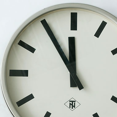 Generationen von Studierenden lasen bis zum Umzug der Goethe- Universität an ihre heutigen Standorte die Zeit auf dieser Uhr ab: Das von dem Architekten Ferdinand Kramer (1898 – 1985) entworfene Modell hing in allen Hörsälen und Seminarräumen auf dem von ihm in der Nachkriegszeit neu bebauten Campus Bockenheim.
