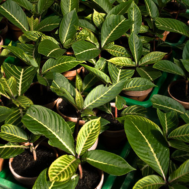 Ein kleiner Blätterwald. Grün, mit heller Zeichnung entlang der großen Adern schmiegt sich ein zartes Blatt an das nächste. Gleich an gleich und höchstens fünfzehn Zentimeter hoch, bilden etwa 350 kaum unterscheidbare und zudem in regelmäßigen Abständen vollständig austauschbare Objekte eine Sammlung, in der mehr steckt, als man auf An...