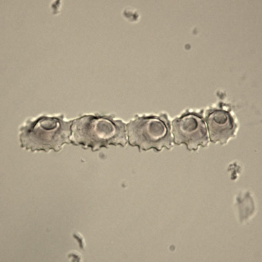 Goethe-Universität Frankfurt am Main, 6. Stock, Raum 6.501: In ein Mikroskop wird der Objektträger mit der Nummer 113 eingelegt. 25-fach vergrößert, erinnert das mit dieser Nummer bezeichnete Präparat an ein hübsches Textilmuster aus Seerosenblättern – doch den Menschen, die das Objekt betrachten, steht der Sinn nicht nach Ästhe...