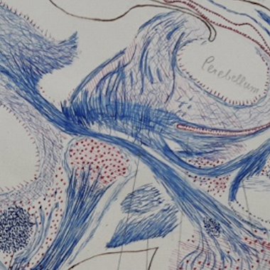 Auf weißem Papier ist ein zum Teil grobes und teils sehr ausdifferenziertes organisches Gebilde ...