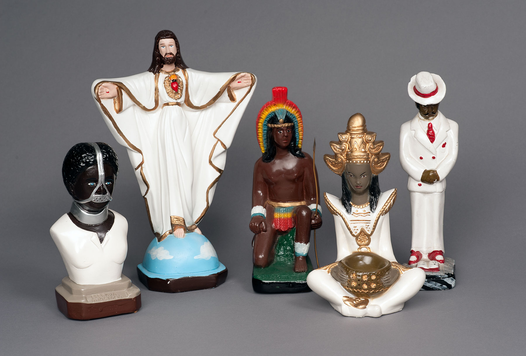 Die brasilianische Umbanda-Religion entstand Anfang des 20. Jahrhunderts in Rio de Janeiro durch die Vermischung von afrikanischen Bantu-Sklaven stammenden Glaubenssystem mit indigenen und christlich-katholischen religiösen Traditionen. Die Figuren gehören einem streng hierarchisch gegliederten Pantheon an und werden als Geister von Ahnen in Trancepraktiken bei Liedern und Trommelrhythmen verehrt.