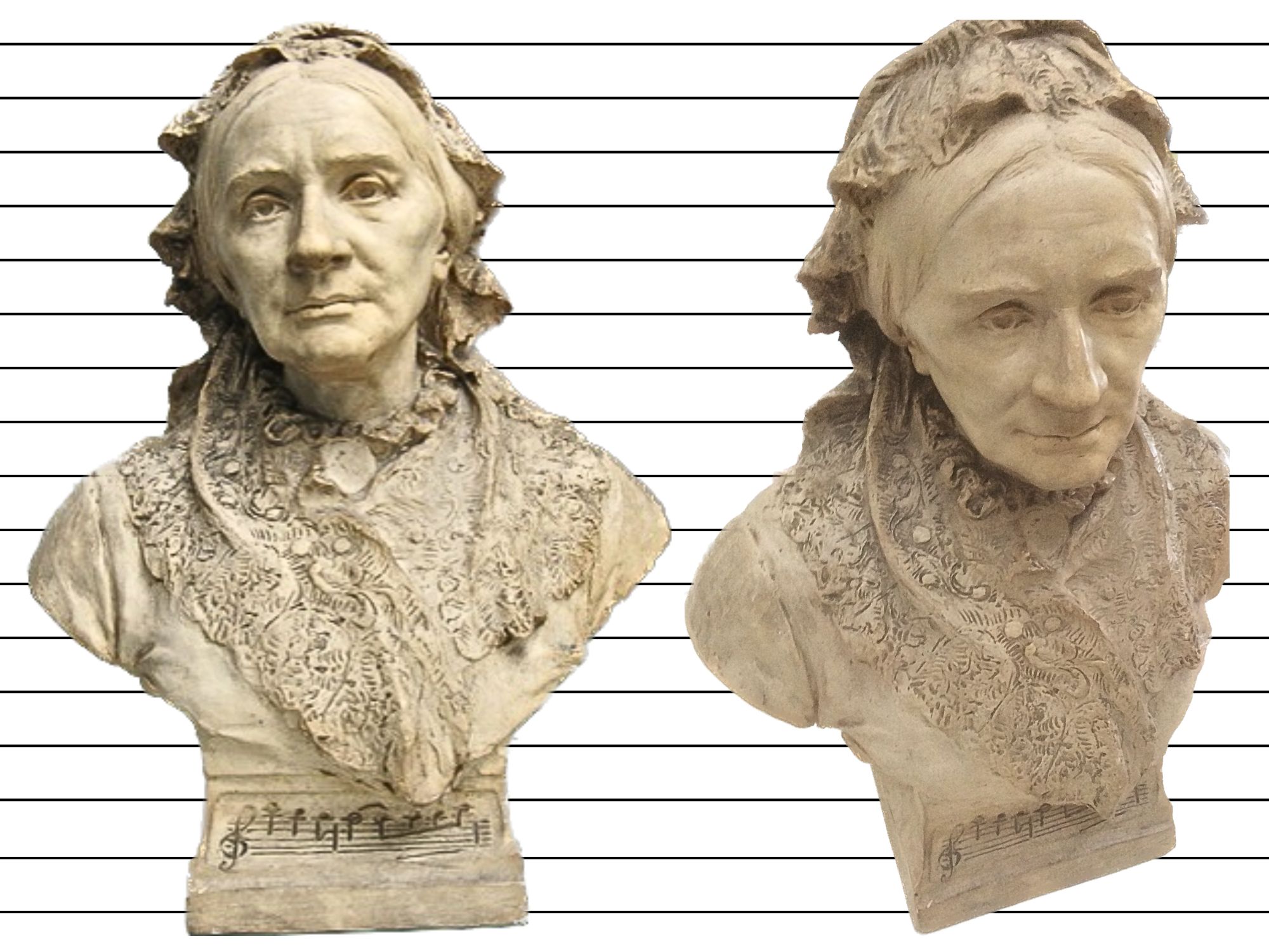 Die Büste gehört zum Bestand des ehemaligen Musikhistorischen Museums des Frankfurter Weinhändlers Jakob Friedrich Nicolas Manskopf (1869-1928), der in seinem Privathaus rund 150.000 Objekte aus seiner Sammlung zum Musik- und Theaterleben von 1550 bis zu seinem Todesjahr 1928 aufbewahrte und präsentierte. In der Sammlung, die nach seinem Tode fortgeführt wurde, sind zudem über 120 Briefe Clara Schumanns enthalten neben 300 Briefen in anderen Sammlungen der UB JCS. Weitere Porträts von Clara Schumann befinden sich in der Kategorie Komponisten.