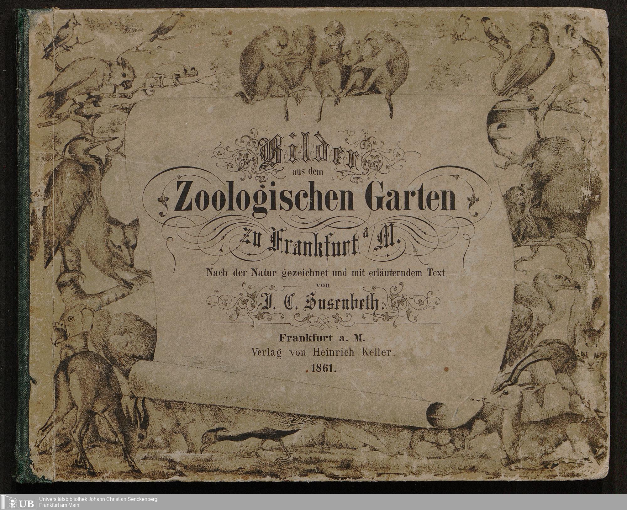 Der Frankfurter Bildhauer, Maler und Lithograf [Johann] Kaspar Susenbeth (1821 – 1873) gibt dieses Werk „allen Freunden [des zoologischen Gartens] in die Hände, in welchem richtige Zeichnungen von den Thieren des Gartens dargestellt sind“. Den 36 Tafeln, die Susenbeth „selbst auf den Stein gezeichnet und nach dem Leben colorirt hat“ sind kurze Beschreibungen der Tiere gegenübergestellt, wobei die Illustrationen „nach der Natur“ und nicht „nach unglücklichen Versuchen früherer Ausstopfekunst“ eindeutig im Vordergrund stehen. Mit lithografischen Druckverfahren war der Künstler, der 1835 – 1844 am Städel’schen Kunstinstitut studierte, schon sehr früh vertraut, weil sein Vater Johann Susenbeth eine eigene Steindruckerei betrieb. Tierdarstellungen blieben sein bevorzugtes Sujet.