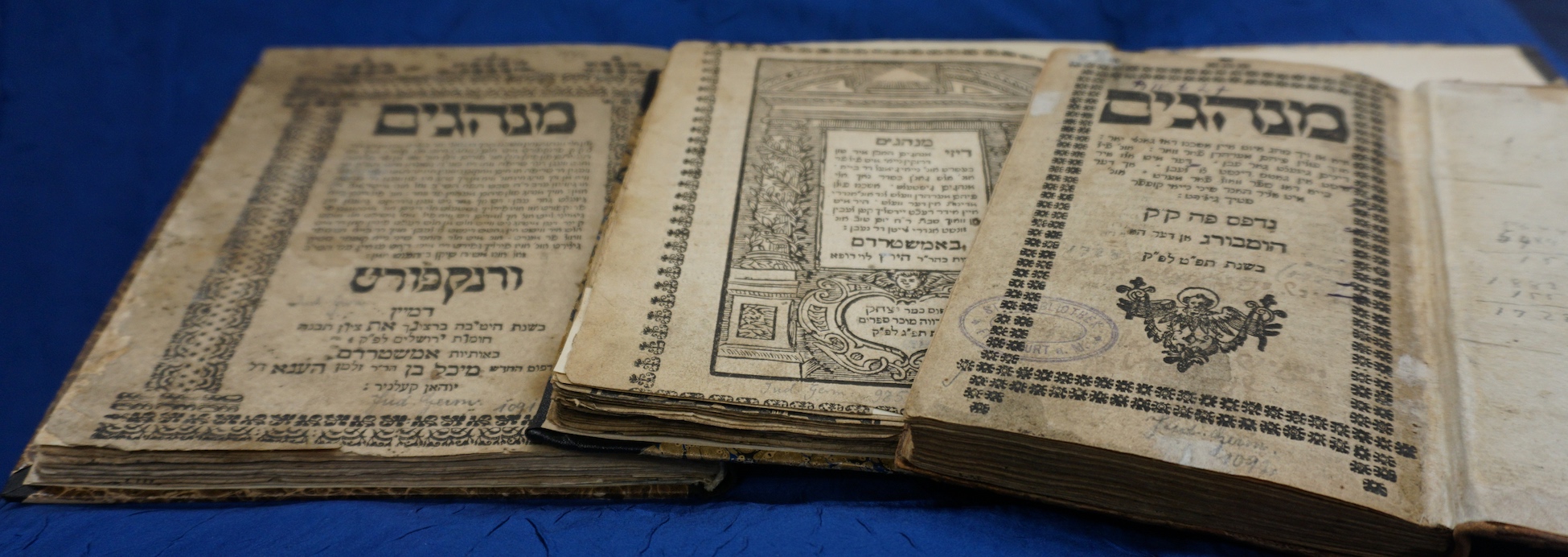 Jewish life is determined by religious practice whose implementation was shaped by local and regional traditions represented by customs or minhagim. Since the Middle Ages, the customs were systematically collected and written down in books of customs, a Sefer Minhagim, that detailed all practical aspects of holidays and ritual acts and usually were meant for women and men with insufficient knowledge of Talmud-Torah. As such, they offer a comprehensive insight into Jewish daily life of past centuries. Rabbi Isaac Tyrnau (14-15th century) authored one of the most influential Minhagim, which initially circulated as a manuscript. It was first published in Hebrew in 1566 and in Yiddish in 1590. Minhagim often included illustrations, usually woodcuts, that underlined the educational purpose of these books guidings one's religious practice. Numerous editions of Tyrnau's Sefer Minhagim have been published since the 16th century. The University Library Frankfurt holds more than Yiddish editions published in Amsterdam, Bad Homburg, Dyhernfurth, Frankfurt am Main, Frankfurt an der Oder, Fürth, Karlsruhe, Offenbach, Rödelheim as part of its Yiddish Print collection (Jud. Germ). The edition presented here was published in Frankfurt am Main in 1722/23 and includes 15 woodcuts. A handwritten note identifies Yitzhak b. Zanvil Leyb Segal of or from Heinsheim as a former owner.Originally this text was published as part of the online exhibition Jewish Books & Jewish Collections: Treasures of the University Library Frankfurt on the occasion of the 12th Congress of the European Association for Jewish Studies at Goethe University Frankfurt, July 2023.