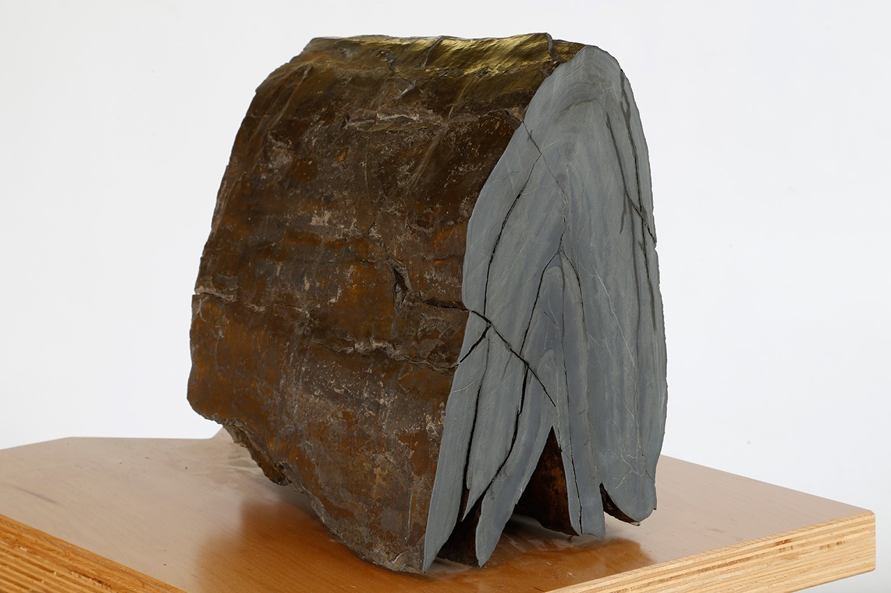 Gesteinsfalten dokumentieren Bewegungen der Erdkruste. Sie entstehen durch die Einengung geologischer Körper bei der Gebirgsbildung, in diesem Beispielwährend der Auffaltung der Alpen. Der Faltenwurf lässt die Bewegungsrichtung erkennen und stellt in seiner Gesamtheit ein Maß für den Grad der Einengung dar. Diese Falte, die Teil der Schausammlung des Instituts für Geowissenschaften am Riedberg ist, zeigt gemeinsam mit vielen anderen dort ausgestellten Falten die sich ändernden Bewegungsrichtungen unter den unterschiedlichsten Druck- und Temperaturbedingungen.