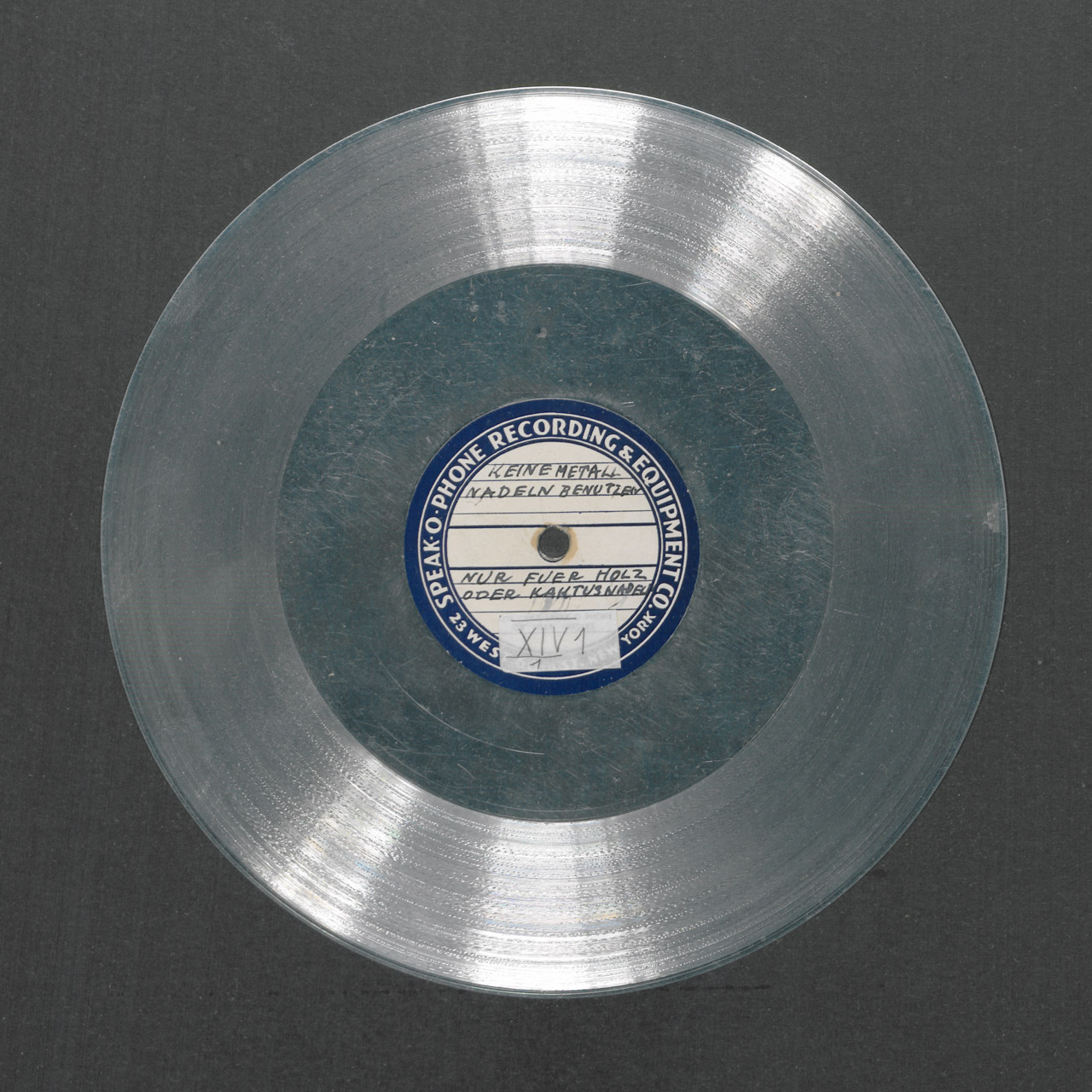 „Lieber Vater, du und die liebe Mutter ihr beide habt den Wunsch meine Stimme zu hören“ – und genauso geht es dem Hörer, bei der ältesten Aufnahme des Tonarchivs der Frankfurter Schule im Archivzentrum der Frankfurter Universitätsbibliothek. Zum achtzigsten und zweiundachtzigsten Geburtstag nahm Max Horkheimer (1895–1973) mit seiner Frau Maidon, kurz nach der Emigration in die USA, für seinen noch in Deutschland befindlichen Vater eine Platte auf. Die Platte selbst wird zwar archiviert, ist heute aber nicht mehr abspielbar – schon als sie in das Archivzentrum gelangte, war sie mit dem Abspielhinweis „Keine Metallnadeln benutzen, nur für Holz- oder Kaktusnadel“ versehen. Heute ist die vormals von der Platte gesicherte Information digital auf den Rechnern des Archivzentrums sowie im Langzeitarchiv der Universitätsbibliothek gespeichert. Max und Maidon Horkheimer sprechen so nur über Kopfhörer eines Computers im Archivzentrum zum Besucher.
