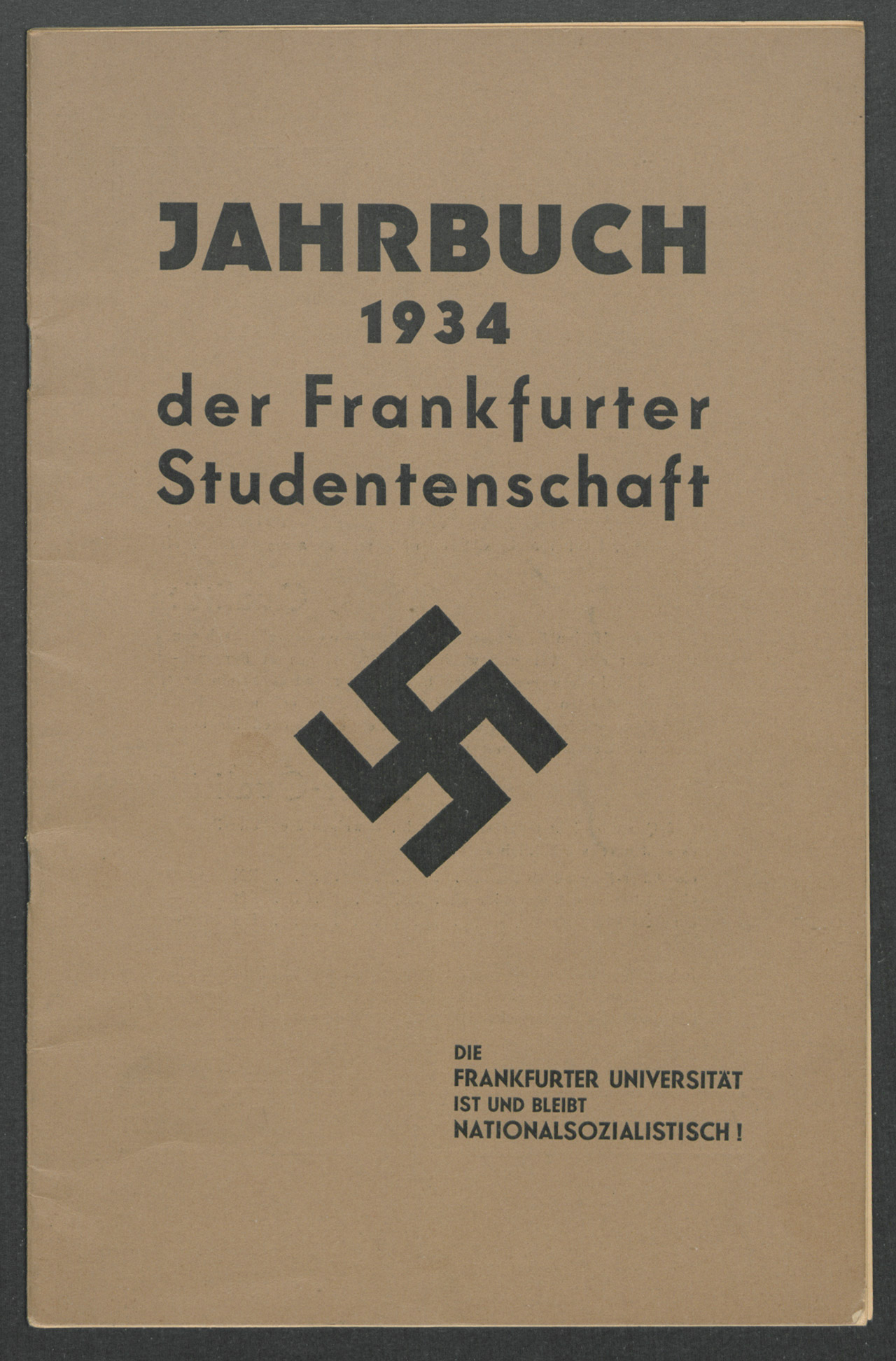 Nicht nur unter den Dozenten und in der Hochschulleitung fanden sich immer mehr Anhänger des Nationalsozialismus, auch studentische Organisationen schlossen sich an und initiierten unter anderem die Verbrennung »undeutscher« Schriften auf dem Römerberg im Mai 1933. Das Jahrbuch definiert den politischen Studenten als denjenigen, »der nicht theoretisch, sondern praktisch an der Politik teilnimmt « und sich »in die Armee Adolf Hitlers einreiht«.
