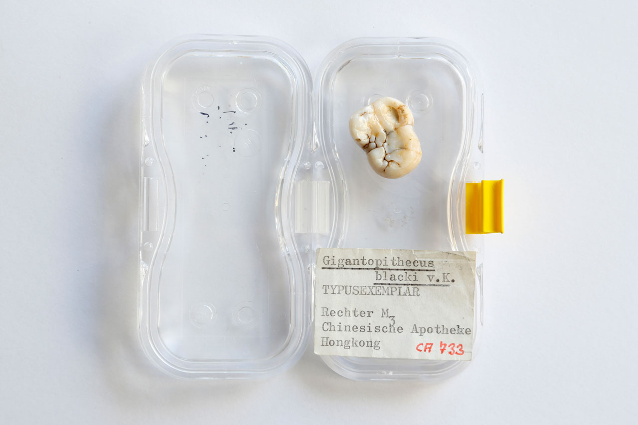 Eines Tages im Jahre 1935 hatte von Koenigswald besonderes Glück: In einer Apotheke in Hongkong fand er einen großen fossilen Backenzahn, der keiner bis dahin bekannten Spezies zugeordnet werden konnte. In den nächsten vier Jahren suchte Koenigswald weiter nach ähnlichen Zähnen und wurde fündig: dritte Backenzähne, die zwei- bis dreimal größer waren als die eines männlichen Gorillas, dem größten heute lebenden Primaten, und eine unglaubliche Ähnlichkeit mit Menschenzähnen hatten.