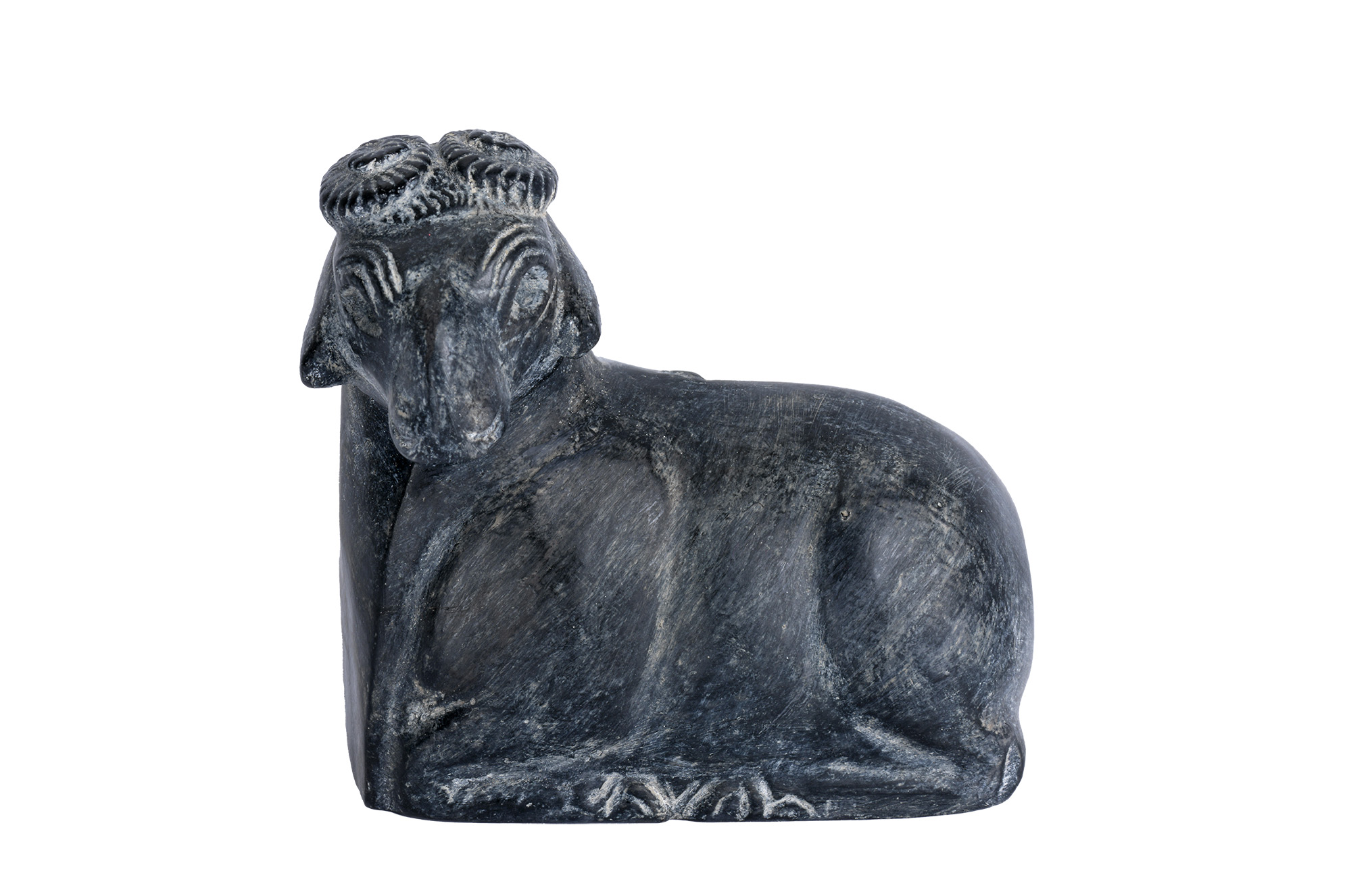 Mit dieser Kleinplastik wird der Bestand der Kunst der Uruk-Zeit um ein typisches Bildwerk ergänzt. Ein liegender Widder ist in sehr naturnaher Darstellung gezeigt und dreht dabei den Kopf dem Betrachter zu. Besonders in der Ausarbeitung des Kopfes kommen Gestaltungsfreude und Lebendigkeit der Uruk-Kunst sehr deutlich zum Ausdruck. Das Original wurde aus einem bituminösen Kalkstein gearbeitet, der sich besonders gut für die plastische Arbeit eignet, da er feinkristallin, aber nicht zu hart ist. Der Stein lässt sich gut polieren, was die Attraktivität der Plastik noch erhöht. Die Augen waren ehemals mit einem farbigen Stein oder Muschel bzw. Elfenbein eingelegt, um die Naturnähe zu vergrößern.