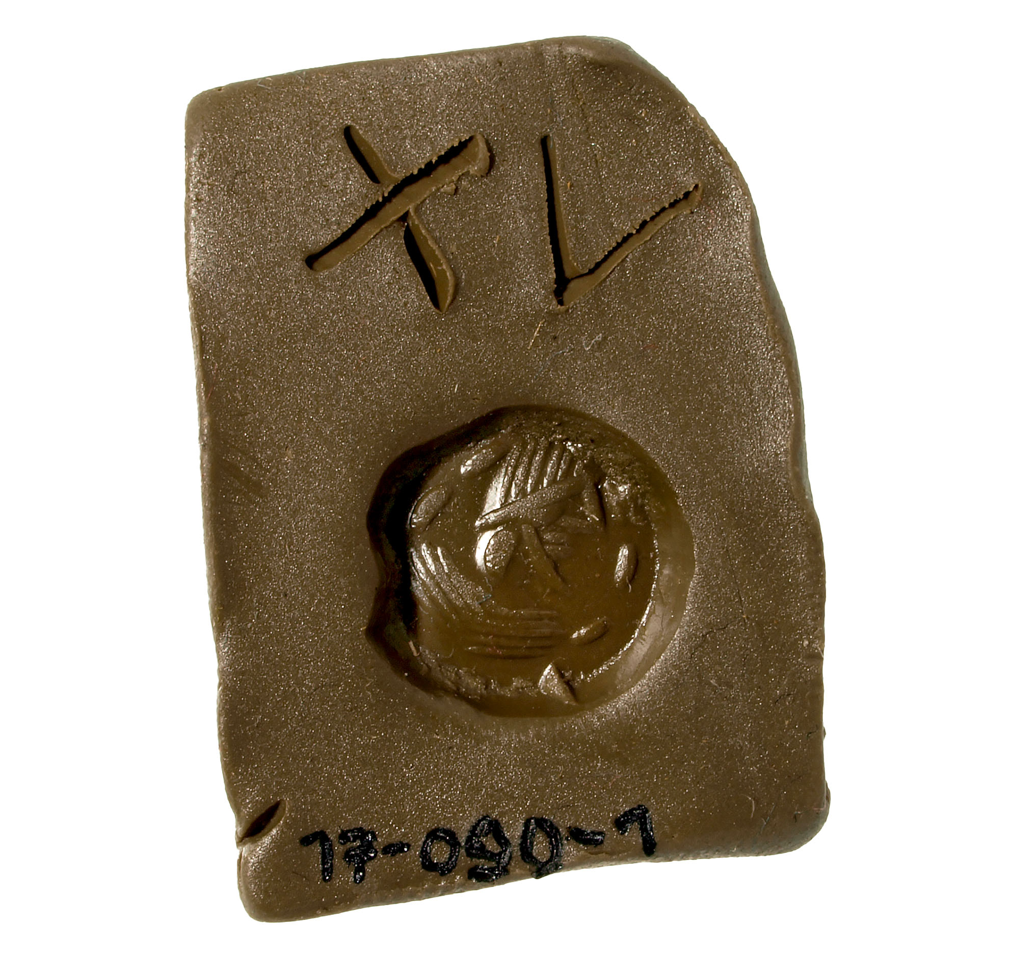 Dieser Abdruck eines sasanidischen Stempelsiegels zeigt eine männliche Büste im Profil.