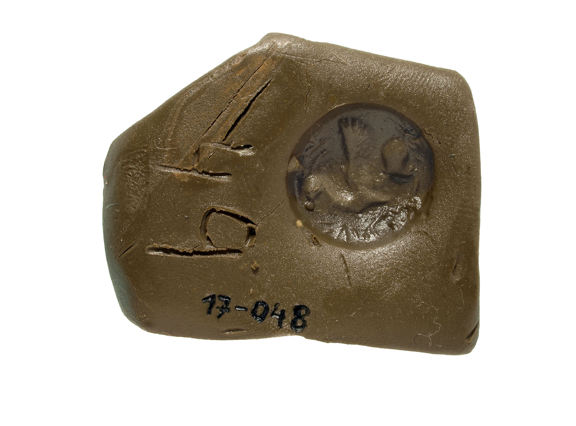 Dieser Abdruck eines Stempelsiegels der "Cretan Popular Group" bildet ein Mischwesen aus Ziege und Greif ab.