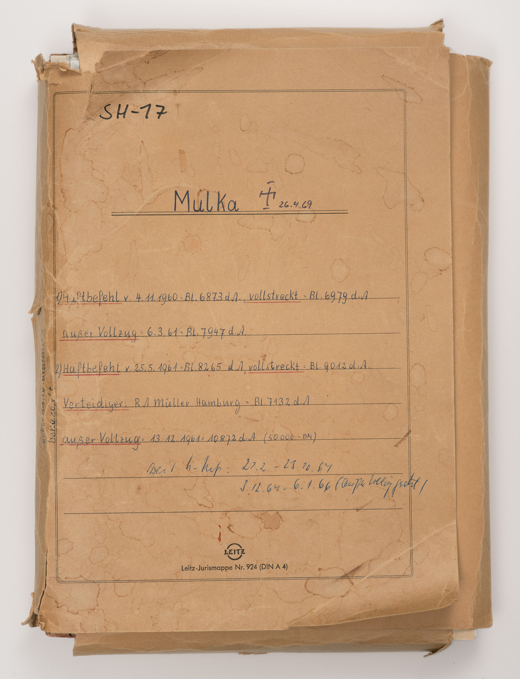 Robert Mulka (1895 – 1969) gehörte als SS-Hauptsturmführer und Adjutant des Lagerkommandanten zu den ranghöchsten Angeklagten im Auschwitz- Prozess. Das Verfahren wurde deshalb auch »Strafsache gegen Mulka und andere« genannt. Er erhielt wegen gemeinschaftlicher Beihilfe zum gemeinschaftlichen Mord in vier Fällen an mindestens 3.000 Menschen eine Zuchthausstrafe von 14 Jahren.