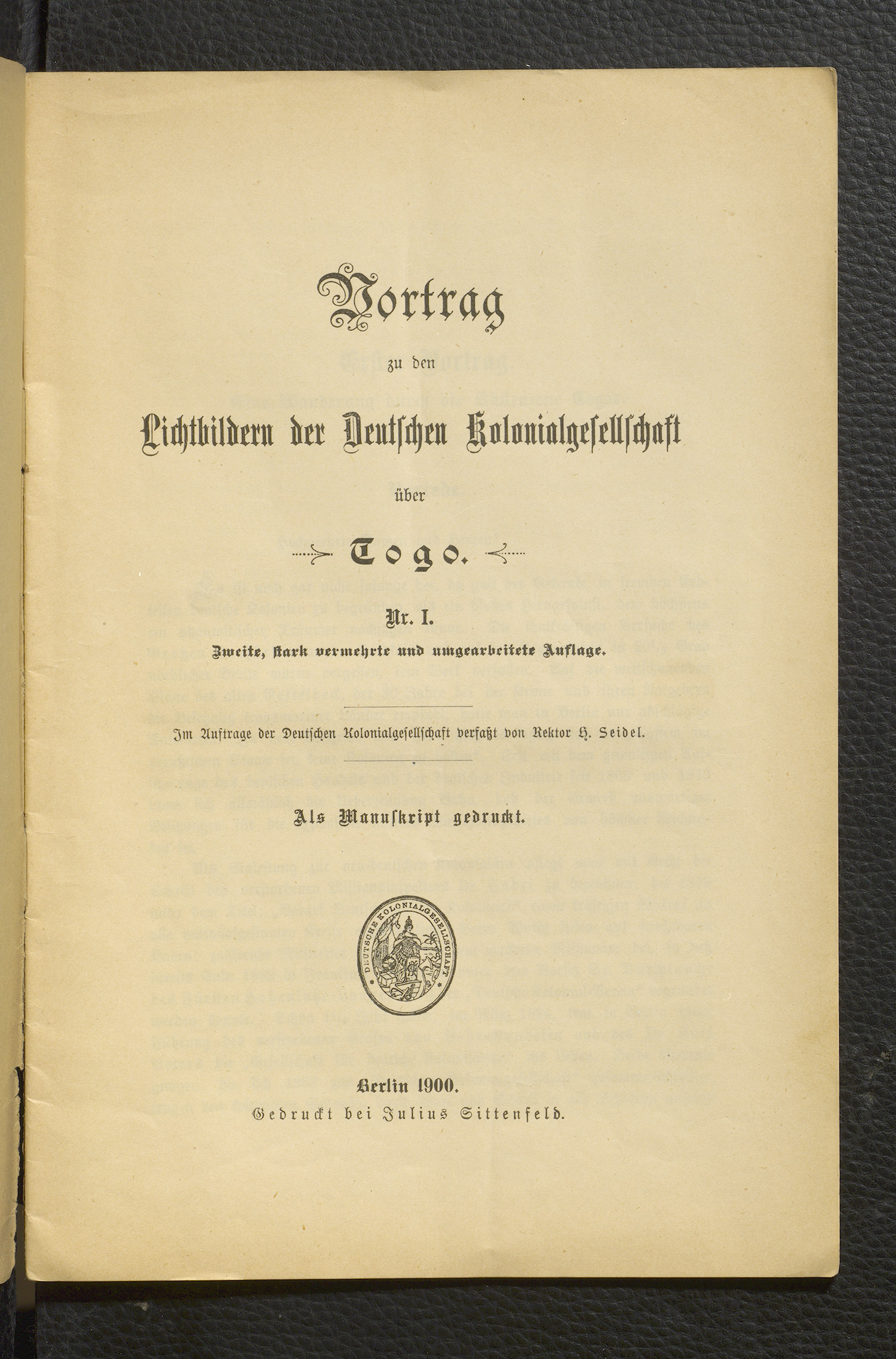 Vortrag zu den Lichtbildern der Deutschen Kolonialgesellschaft zu Togo