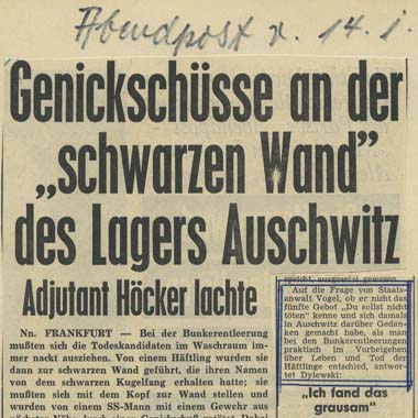 Erfassung: Die Quellen sind nach Archiveinheiten (Aktenordner und Mappen) verzeichnet. Die Hauptakten des 1. und 2. Auschwitz-Prozesses sind nach folgenden Quellensorten erschlossen (Vernehmungsprotokoll, Aussage, Erklärung, Antrag, Verfügung, Brief). Die beiden erstellten Findbücher erlauben einen gezielten Zugriff insbesondere auf die Protokolle der Vernehmungen von Auschwitz-Überlebenden und SS-Angehörigen, die im Rahmen des Vorverfahrens vernommen worden sind. Im Jahr 2013 ist damit begonnen worden, die Akten auf der Basis der Archivsoftware FAUST 7 zu erfassen.